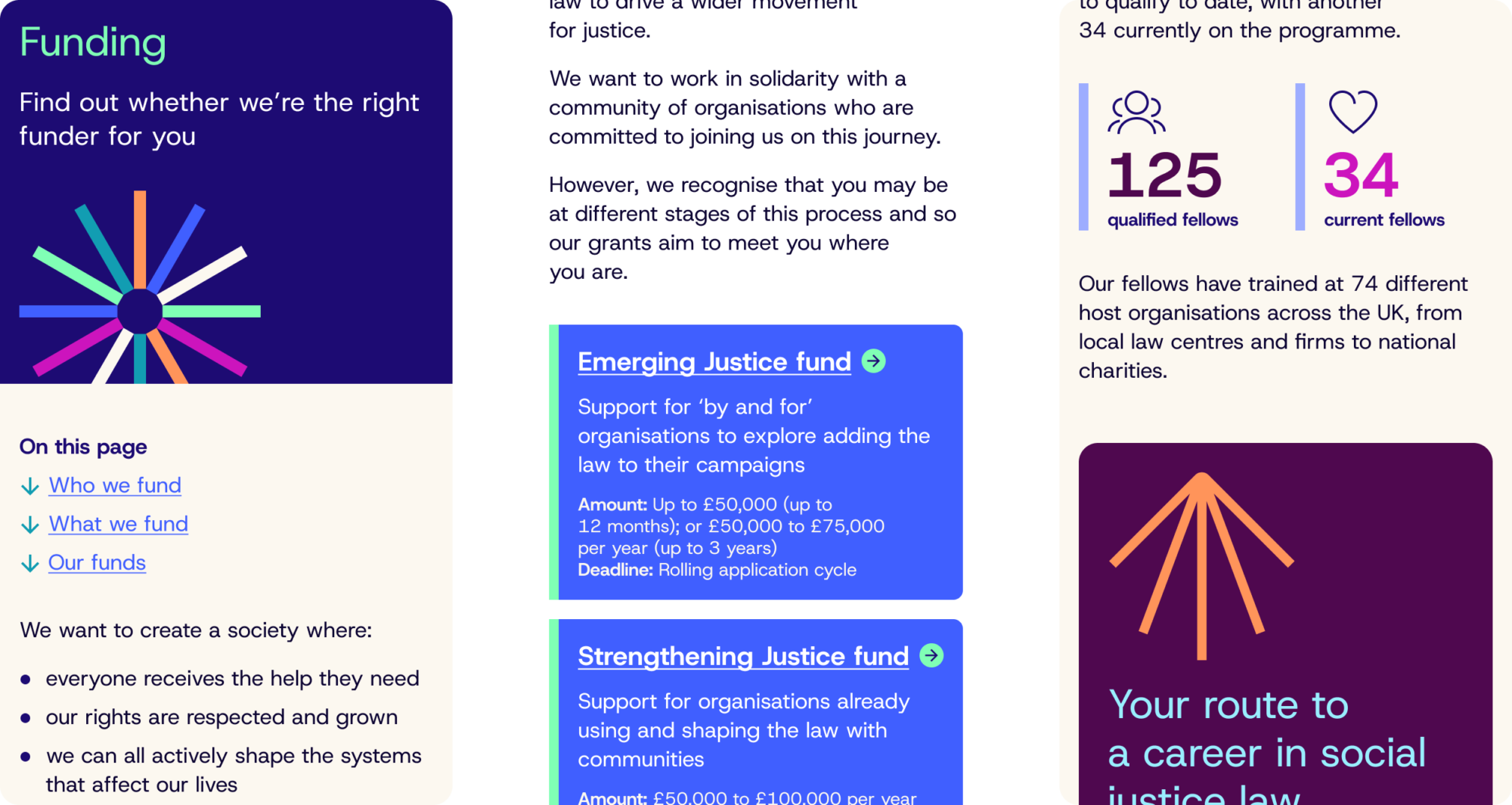 During our audience research, we’ve found that cultural fit and shared values often rank highly in organisations’ decisions in whether or not to apply for funding. And just as often, the cultural fit is (or would be) great but it’s let down by a brand or website that doesn’t communicate funding goals or objectives.