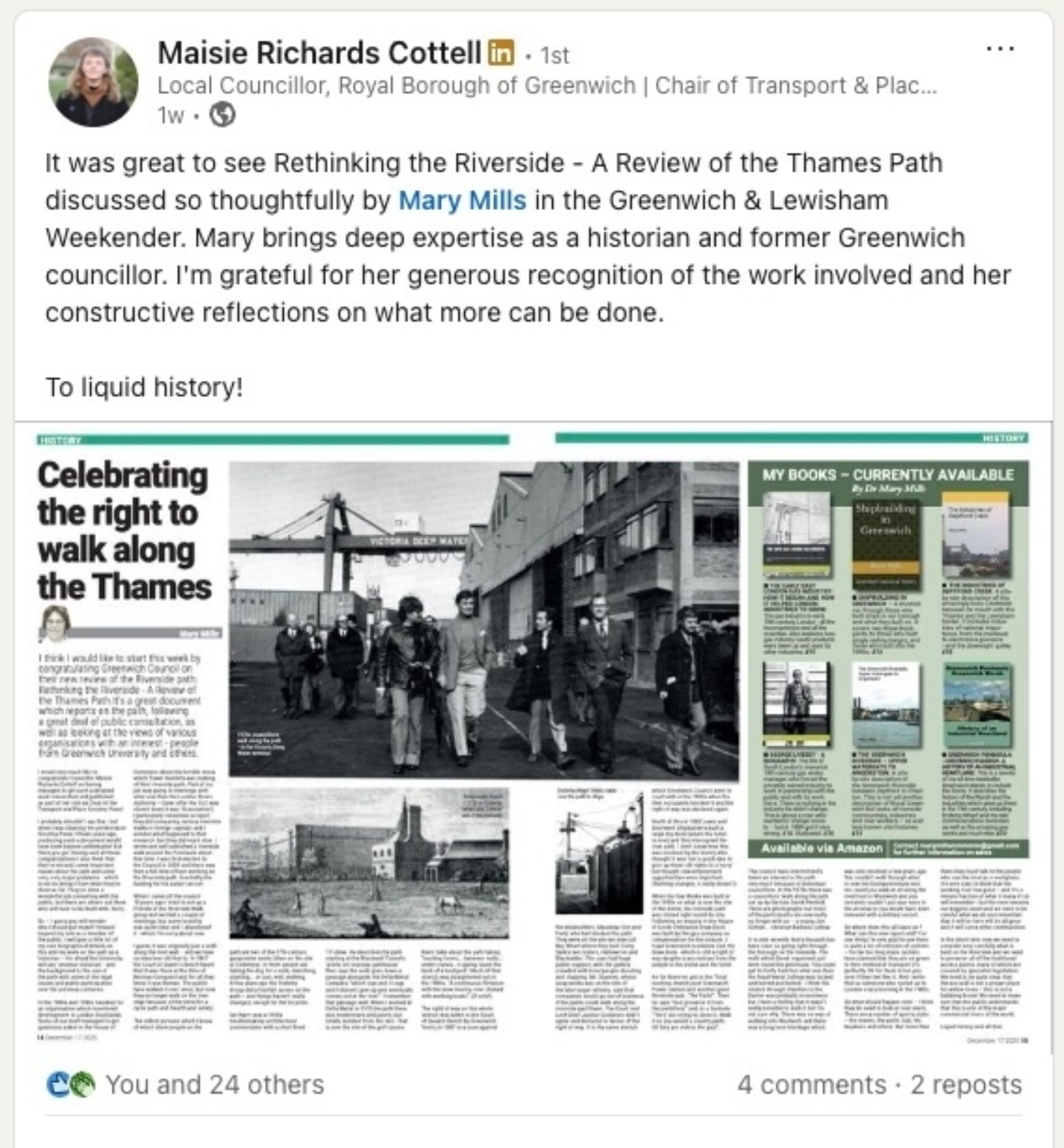 For example, my local councillor, who I speak to regularly through my work on the residents association has never been more active on LinkedIn - and we are both already seeing the benefits of connecting through the platform.
