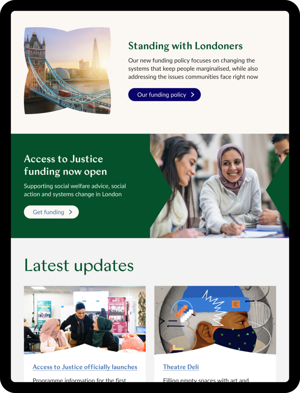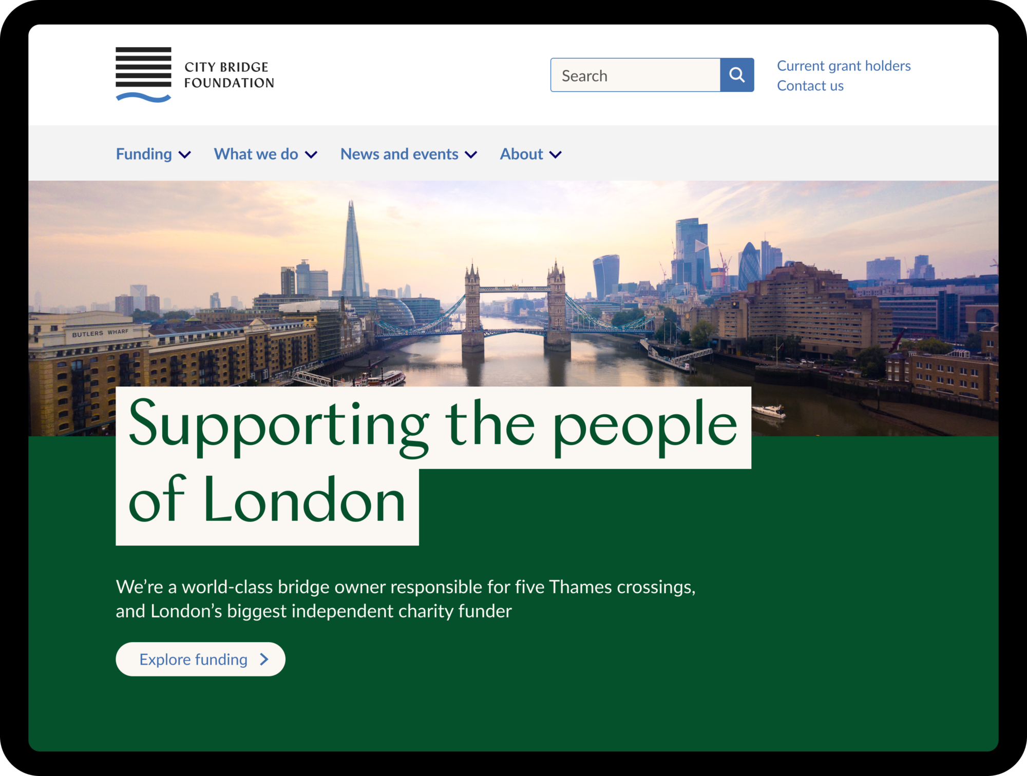 City Bridge Foundation have been supporting people in the capital for over 900 years, and are committed to improving the lives of Londoners who face systemic barriers. We have partnered with them since 2021 to design and iterate an accessible website that better reaches these communities, and makes the funding process more user-friendly.