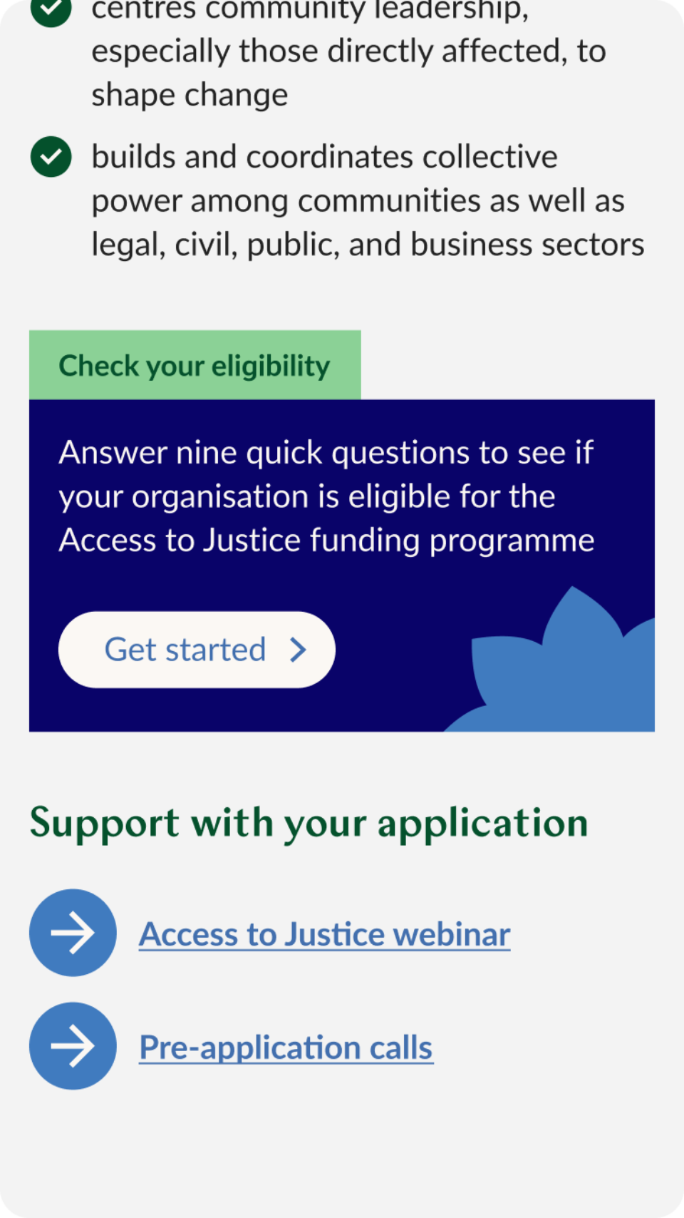 Once we had mapped different user needs, we developed a digital kit of parts that allows the team at City Bridge Foundation to build their different funding pages over time as new programmes are launched.