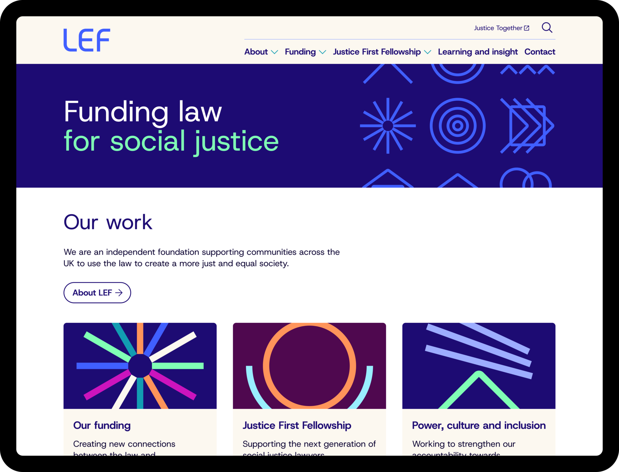We helped LEF streamline their online content, tested a new information architecture and created a new accessible digital toolkit that scales and flexes the new brand across their whole website.